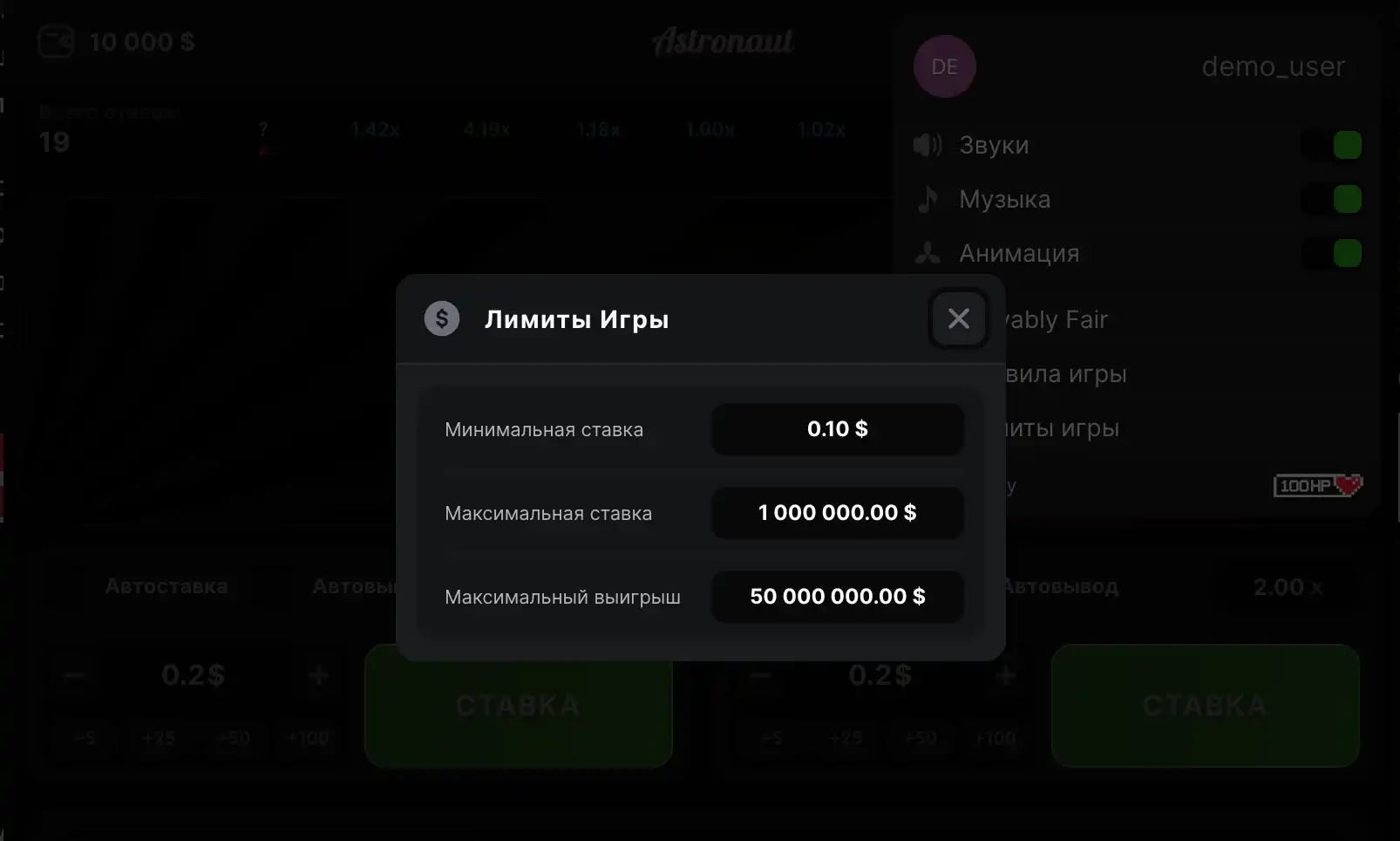В Astronaut на старт выходит маленький космонавт с ранцем. Секунда за секундой шкала роста ускоряется, а герой поднимается все выше. Твоя задача — остановить полет в подходящий момент: чем дольше ждешь, тем крупнее итог, но риск внезапного обрыва тоже растет. Иногда раунд гаснет почти сразу, иногда тянется значительно дольше — за счет этого и появляется то самое напряжение выбора.