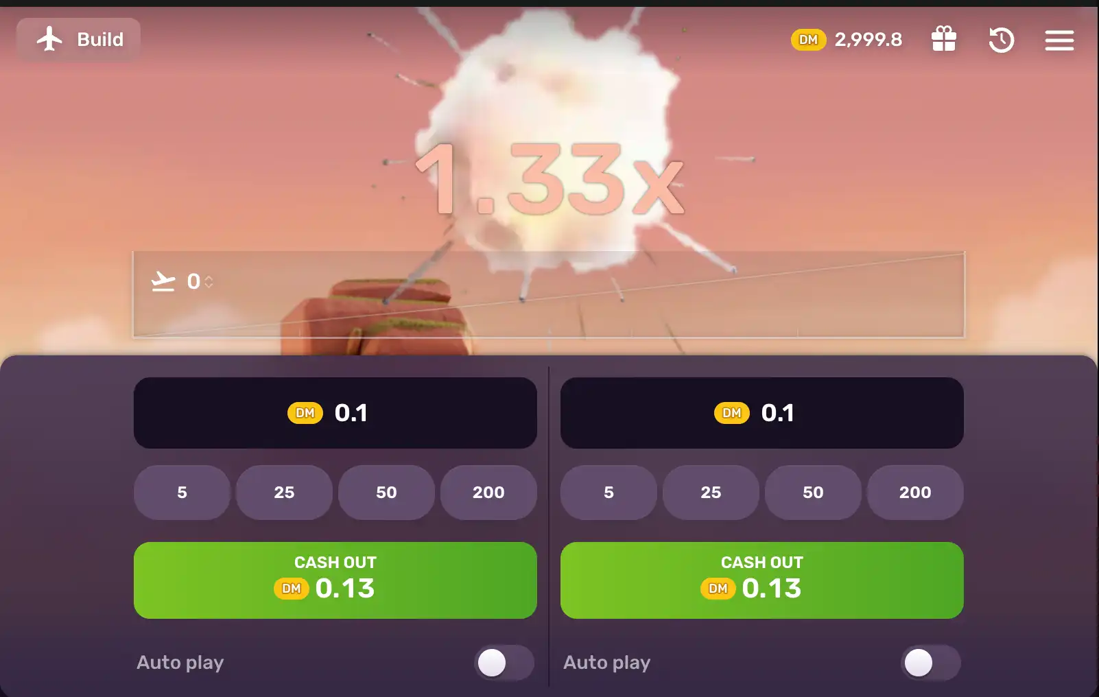 Эта игра достаточно отличается от своих коллег краш игр, дизайн более насыщен и притягивает взор. Очень круто выглядит сам процесс полета самолета, а также взрыв, нам как пользователям было интересно наблюдать за игрой.