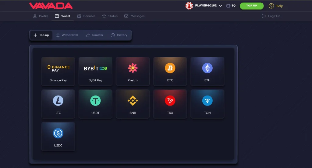 Помимо криптовалют, Vavada также поддерживает традиционные платежные системы. Доступны Binance Pay и ByBit Pay для тех, кто предпочитает использовать крупные криптобиржи для проведения транзакций. Система Plastrix обеспечивает дополнительные возможности для пользователей, предпочитающих альтернативные методы оплаты.